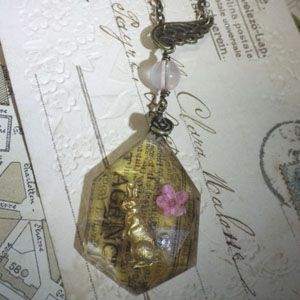 ウサギのチャームと桃色の押花を、樹脂で閉じ込めました。背景部分は、古いフランスの新聞です。表面にはワンポイントにスワロをぽちっと。チャームの上には、氷種ローズクォーツと羽根のチャームをつなげてみました。つけたイメージはこんな感じ。羽根のチャームがいいアクセントになってるんじゃないかなーと自画自賛です。ハンドメイド・手作り雑貨の委託販売のお店C*styleL様で取り扱っていただいてます。どうぞよろしくお願いします。参加中です。