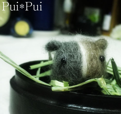 PSPソフト、ダンガンロンパが気になる今日この頃。いかがお過ごしでしょうか。こくわです。今日は羊毛フェルトに初挑戦しました。モデルは我が家のアイドルモルモットのフーちゃんです。ふわふわまるっこいです。ご本人と。茶色はもっと、明るい色使ったほうがよかったな…。後ろに写り込んでる黒い布は、ケージにかけている寒さ対策用です。脱ぎっぱなしではないです。一応。『写真なんか撮ってないで ほしゃほしゃ(牧草の穂)くださいよ。』…と言いたそうです。ランキング参加中です