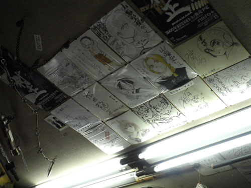 武器屋さんの天井に貼ってある、豪華作家さん方のサイン。