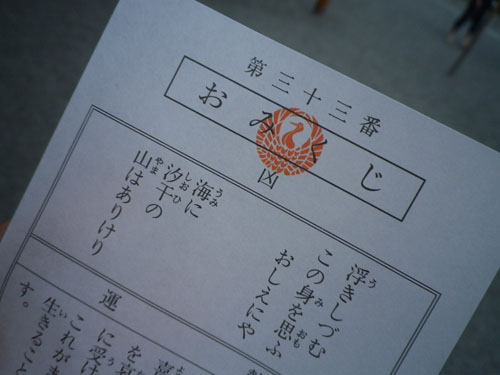 おみくじ引いたら凶でした。
