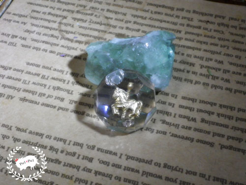 美人な妖精さんを樹脂に閉じ込めてみました。キラキラ具合が素敵なので、背景も透明なままです。満月を望む工房用アイテムとして考えていたのですが頭でっかちになっていたので、一旦具現化。ペンダントにする予定です。最近は、プロクリスタルというレジンを使用しています。LED製造に使われる高透明のエポキシ だそうです。角が多い型で使うと、すごくキラキラしているのですがうまいこと撮れませんでした。参加中です