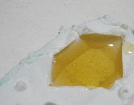 ダイソーでかわいい色のマニキュアを購入。レジンと合わせてみると…きれいな琥珀っぽい色に!うまく硬化すると良いなあ。よろしければ、ぽちっとお願いします