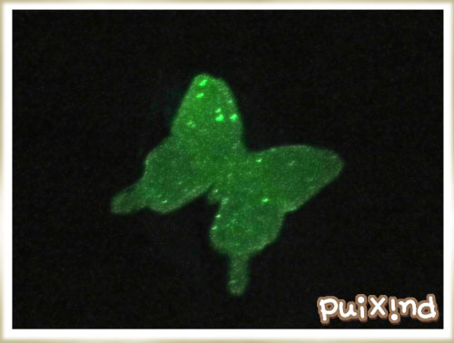 背景部分には、見る方向によって色が変わる塗料をぬったので