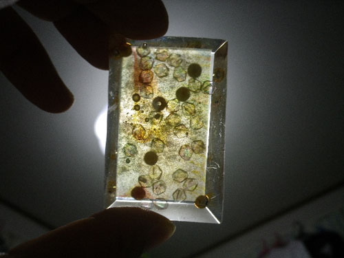 蛍光灯に向けると全部透けて見えて何がなにやら。