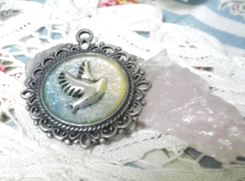 レースに皮ひもを通して、ネックレスにしてみました。