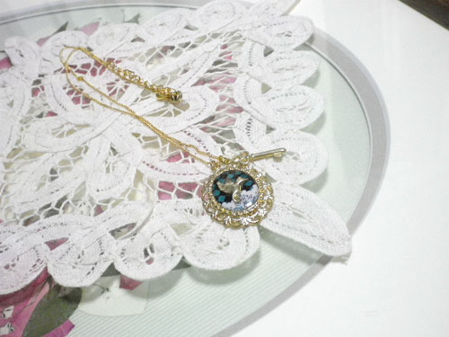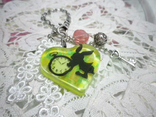 ストロベリークォーツとアリスっぽいチャーム+皮ひも