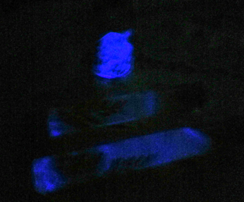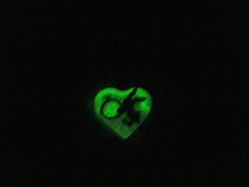 裏にまわる部分に、夜光粉末を溶かしたレジンをつかっているので