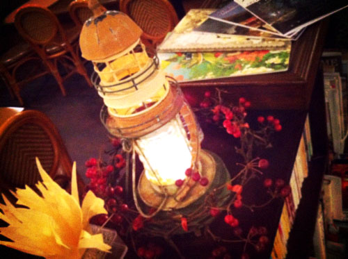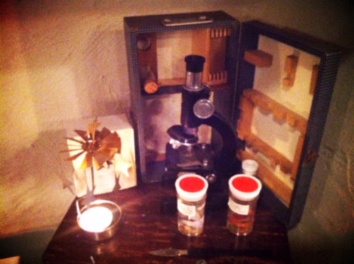 本物ろうそく入り灯台オブジェに、顕微鏡。