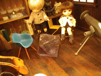 すごく大きな八面体螢石とPFちゃんたち。